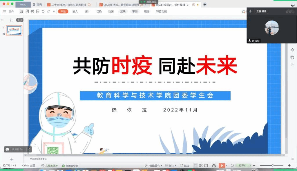 疫情就是命令,防控就是责任。为进一步加强对我院新冠疫情防控的教育力度,强化防疫思想认识,切实做好校园安全及疫情防控工作,教育科学与技术学院于11月13日晚在腾讯会议召开以“共防时疫,同赴未来”为主题的疫情防控工作线上会议,教育科学与技术学院团委、学生会的全体干部与干事参加了本次会议,会议由团委书记热依拉老师主持。