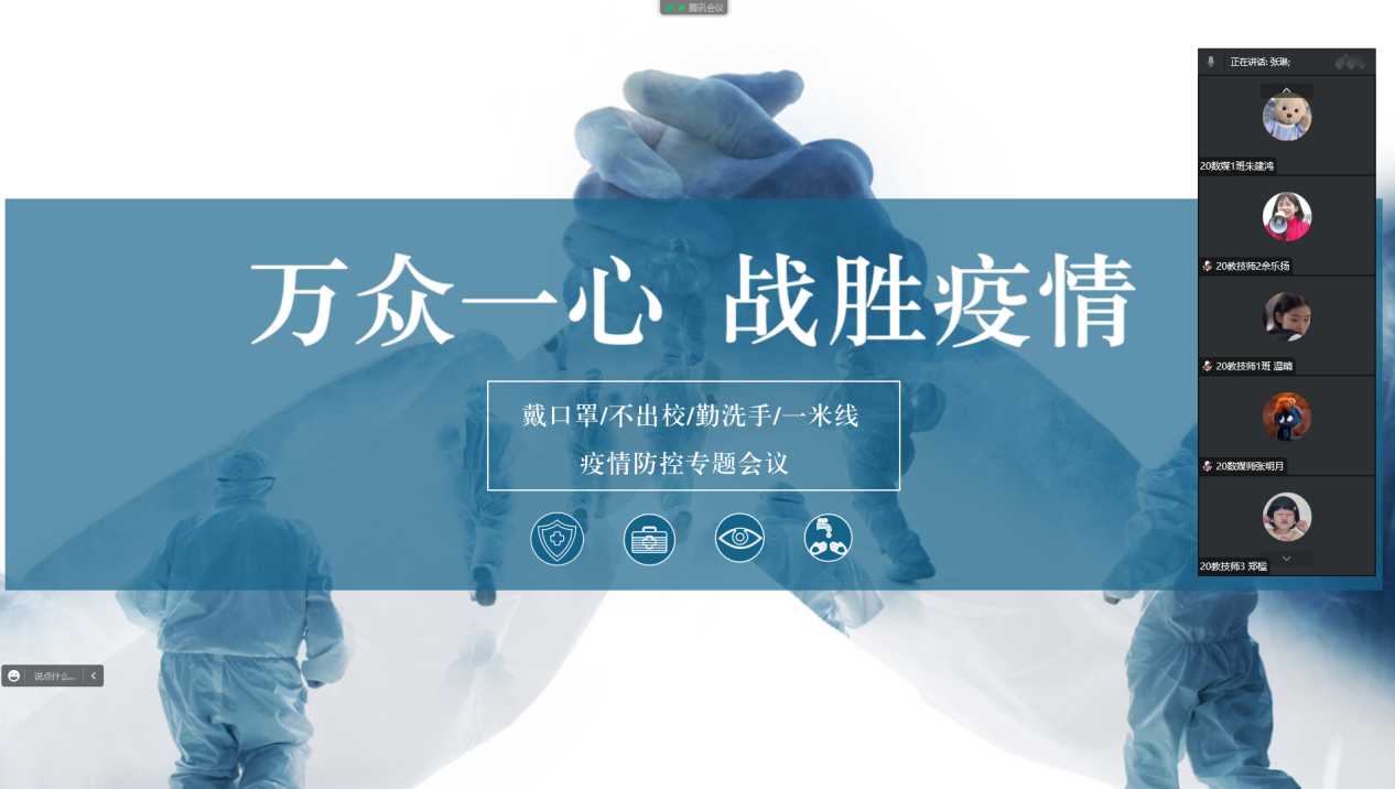 11月10日,在广州新冠疫情日益严峻的背景之下,我院20级数媒教技师的班级班长在辅导员张琳老师的组织和带领下,通过线上会议的形式,开展疫情防控专题会议。