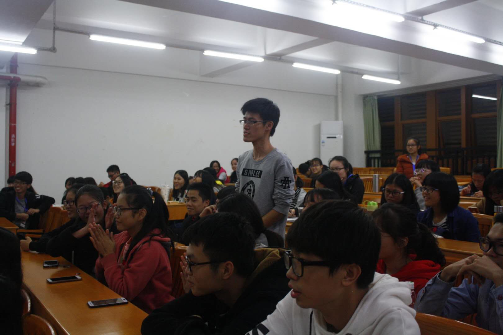 第二轮竞赛开始前主持人宣布卓越小组首次占据领先地位。但是,在接下来的比赛中其他小组也不甘示弱的进行着激烈的角逐,本轮即将接近尾声,记分员们在争分夺秒的统计得分的同时,现场正在进行的环节是观众有奖竞答环节,观众们积极地回答问题。