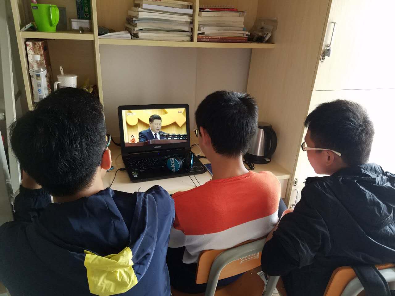 在观看完直播后,同学们一定要主动团结在在以习近平同志为核心的党中央领导下,永远跟党走,不忘初心,牢记使命,坚定不移高举中国特色社会主义伟大旗帜,认真贯彻十九大精神,努力成为社会主义的建设和合格的接班人!以饱满的精神状态和奋斗姿态,为决胜全面建成小康社会,夺取中国特色社会主义伟大胜利,实现中华民族伟大复兴的中国梦不懈奋斗。