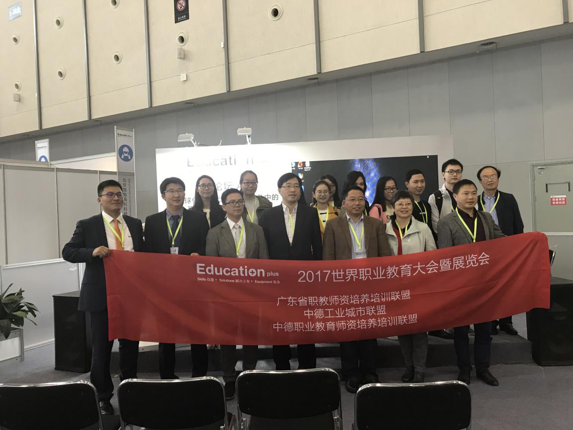 2017年10月19日上午,“Education+2017世界职业教育大会暨展览会”在南京国际博览中心1号馆盛大召开。本次大会由德国斯图加特展览公司、中国职业教育对外合作联盟、中国机械国际合作有限公司、世界职业教育大会暨展览会组委会联合主办,吸引了大量优秀的中外企业、职业院校聚集于此,交流经验,寻求合作,共同进步。广东技术师范学院阮剑亮老师率职业技术教育学专业的7位研究生参加了会议。