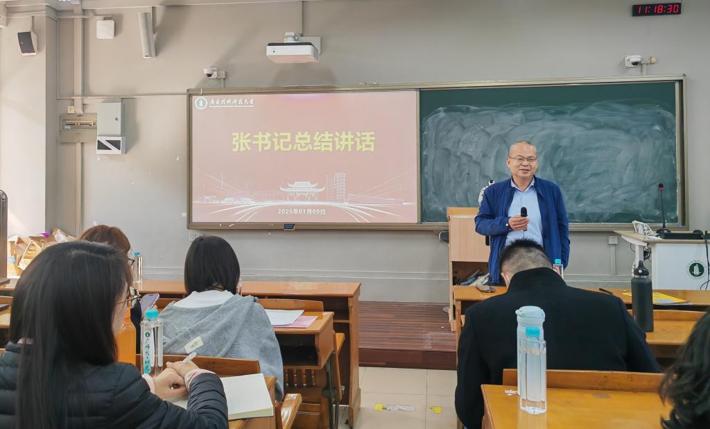 最后,张旭日书记进行总结讲话,感谢了全体教职工在2024年的奉献,希望全体职工新的一年继续奋斗,以博士点申报为核心任务推进学院各项工作,进一步扩大学院影响力。在全院教师职工的共同努力下,学院将创造更加辉煌的明天。