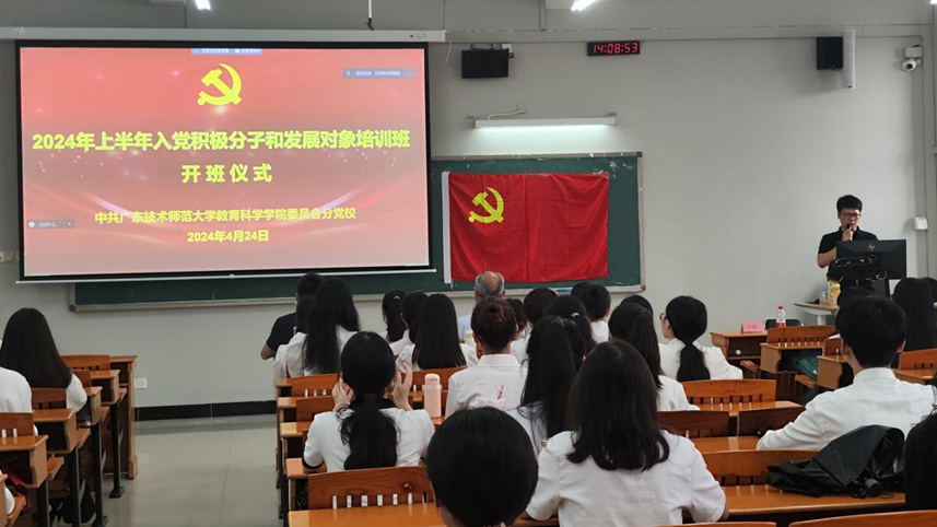 为深入学习习近平总书记重要讲话和重要指示精神,牢牢把握新时代党校工作的根本遵循,强化党员教育培训工作规范提升,助推新时代党校事业高质量发展。2024年4月24日,royal皇家88平台分党校于三教303教室组织召开了2024年上半年入党积极分子和发展对象培训班开班仪式暨专题党课培训第一讲。学院党委书记张旭日、数字媒体技术本科生党支部书记张琳、应用心理学本科生党支部书记肖孟琦、学前教育本科生党支部书记吴晨阳、专职辅导员宁康出席会议。会议由宁康主持。