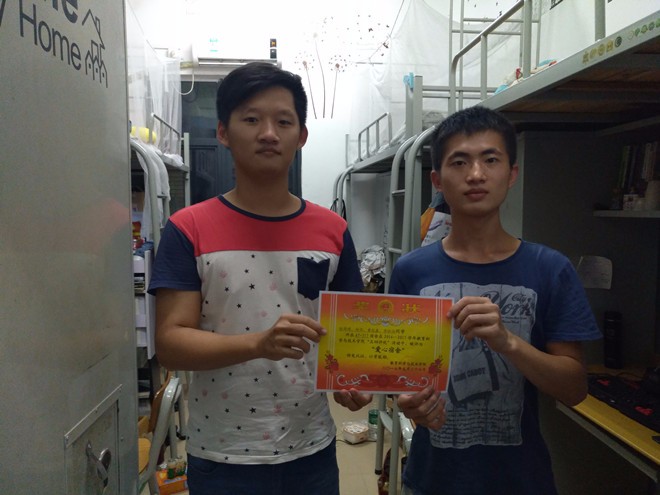 阳光爱心基金会是一个号召同学们每天坚持节约“一毛钱”来帮助每一个家庭经济有困难的同学,让其顺利完成学业的协会。为了鼓励同学们坚持奉献的精神,阳光爱心基金会决定对这一学年来热心参与爱心捐助计划的宿舍给予相应的奖励,为此阳光爱心基金会的工作人员于6月6日给十个“爱心宿舍”颁发奖状。