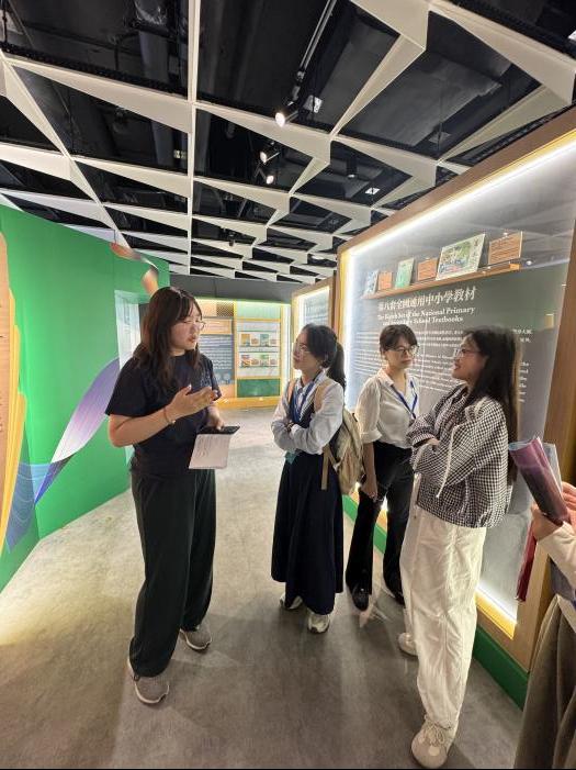 香港教育大学老师现场讲解:“教材既要传承文化基因,更要培养未来素养。”学生们就“数字化时代教材的守正创新”展开研讨,特别关注粤港澳大湾区教材融合发展路径。